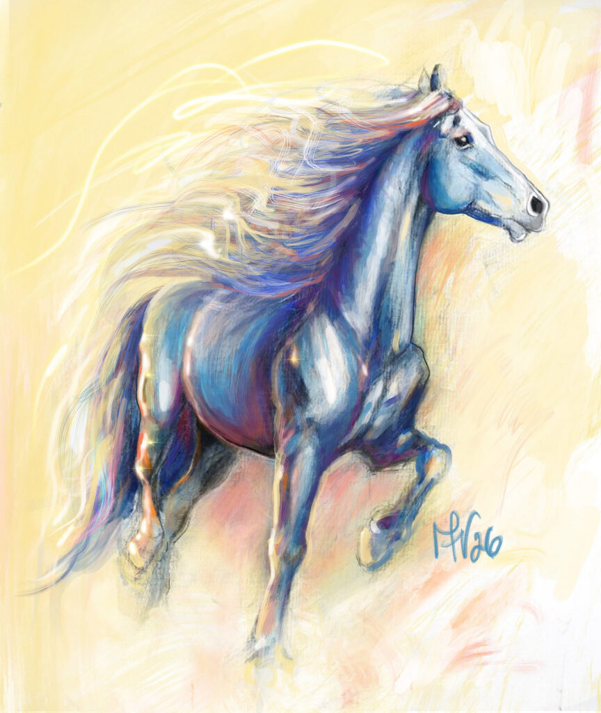 Do maleb jsem vložila srdce a touhu propojit se s energií tohoto roku, která slouží mojí vizi prožít ho v radosti a pohybovat se svobodně na cestě k životu v sebeurčení. Malby vznikaly v přání tuto vizi s vámi komunikovat a podpořit vás na vaší cestě v tomto jedinečném roce. Vytvořila jsem kolekci tapet do vašich mobilů, která je ke stažení zde. Na každé roční období jsem připravila jiný obrázek koně, aby vám připomínal, že to na čem skutečně záleží je vaše štěstí a záměr žít v souladu s vaším srdcem, i když vše se neustále mění.