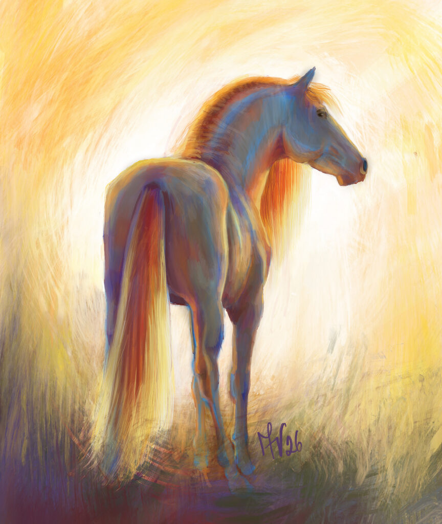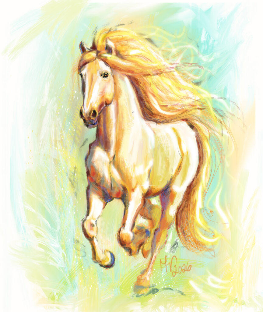 Do maleb jsem vložila srdce a touhu propojit se s energií tohoto roku, která slouží mojí vizi prožít ho v radosti a pohybovat se svobodně na cestě k životu v sebeurčení. Malby vznikaly v přání tuto vizi s vámi komunikovat a podpořit vás na vaší cestě v tomto jedinečném roce. Vytvořila jsem kolekci tapet do vašich mobilů, která je ke stažení zde. Na každé roční období jsem připravila jiný obrázek koně, aby vám připomínal, že to na čem skutečně záleží je vaše štěstí a záměr žít v souladu s vaším srdcem, i když vše se neustále mění.